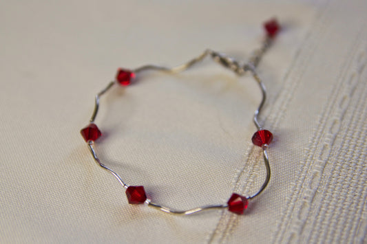 Sterling Silver Red Beaded Bracelet
