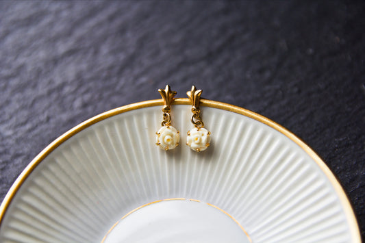 Sold outwhite Rose Gold Stud Dangle Earrings