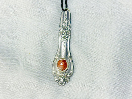 Silver Sunstone Floral Crystal Pendant