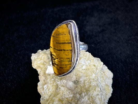 Tigers Eye Sterling Silver Crystal Ring, Size 6