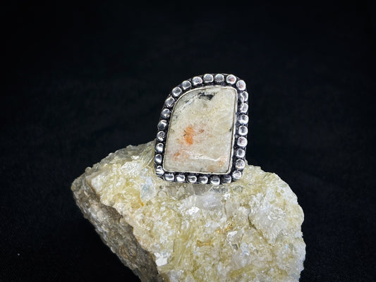 Sunstone & Moonstone Sterling Silver Crystal Ring, Size 6
