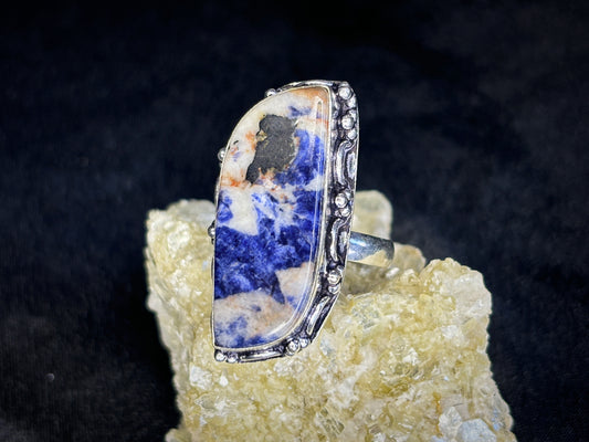 Sodalite Sterling Silver Crystal Ring, Size 10