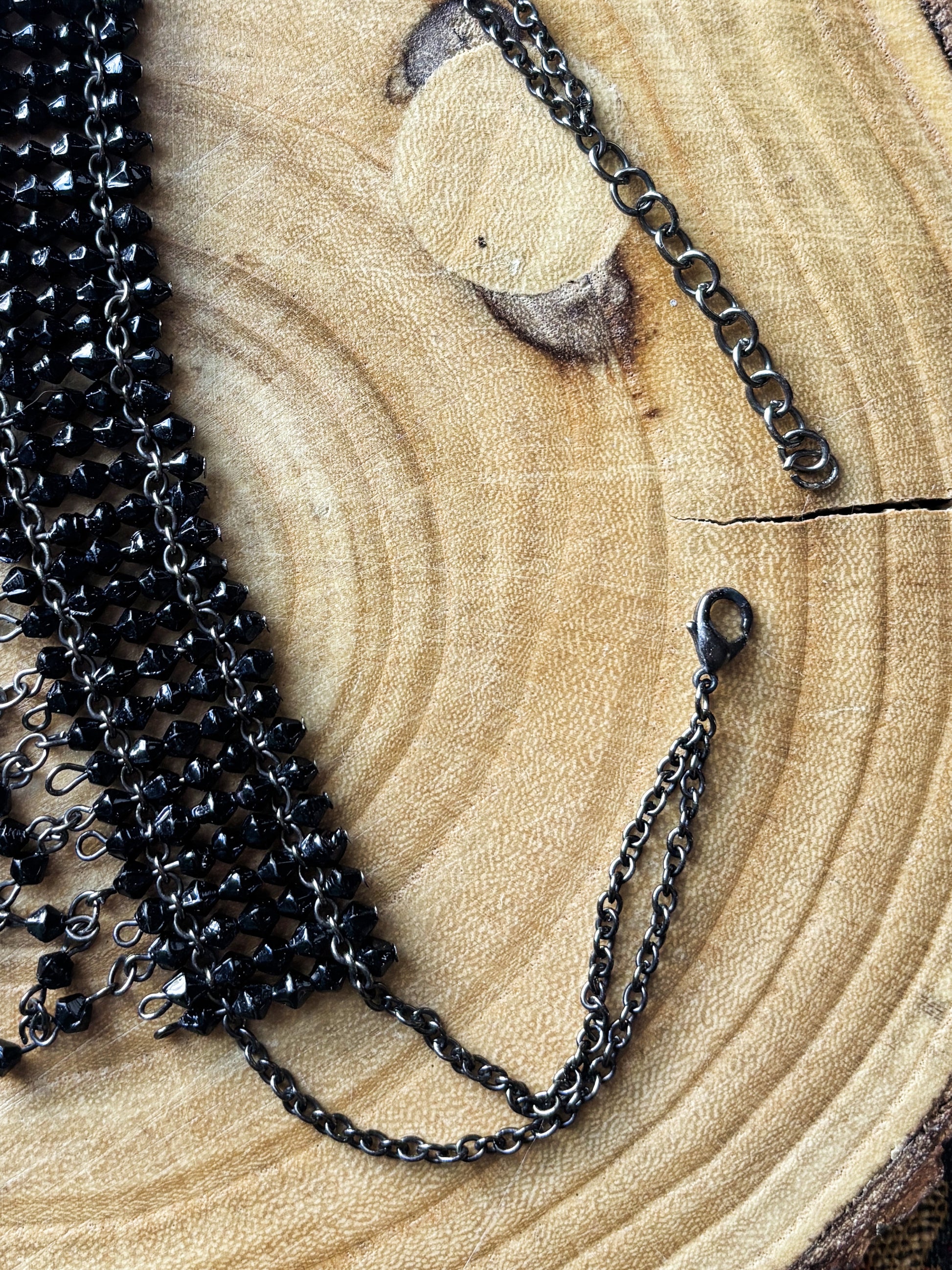 Black Beaded Gothic Statement Choker Necklace & Earring Set