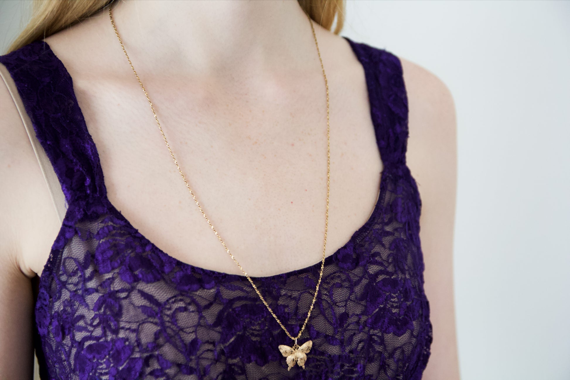 This purple lace tank top is a unique thrifted find! It is a size small, with adjustable straps and a sheer lace bottom half. It is a gorgeous deep purple with intricate lace, making it a beautiful statement top! Grab it before it goes!