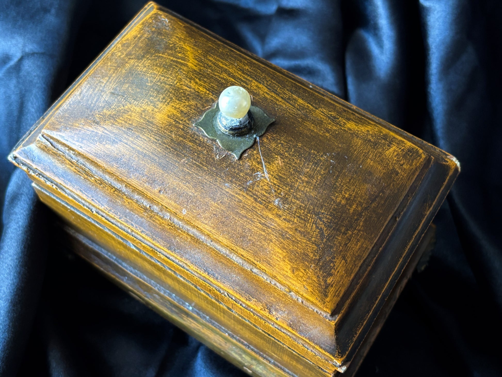 **There are minor imperfections on the surface of the wooden box, but all goes to show the previous love it has endured.