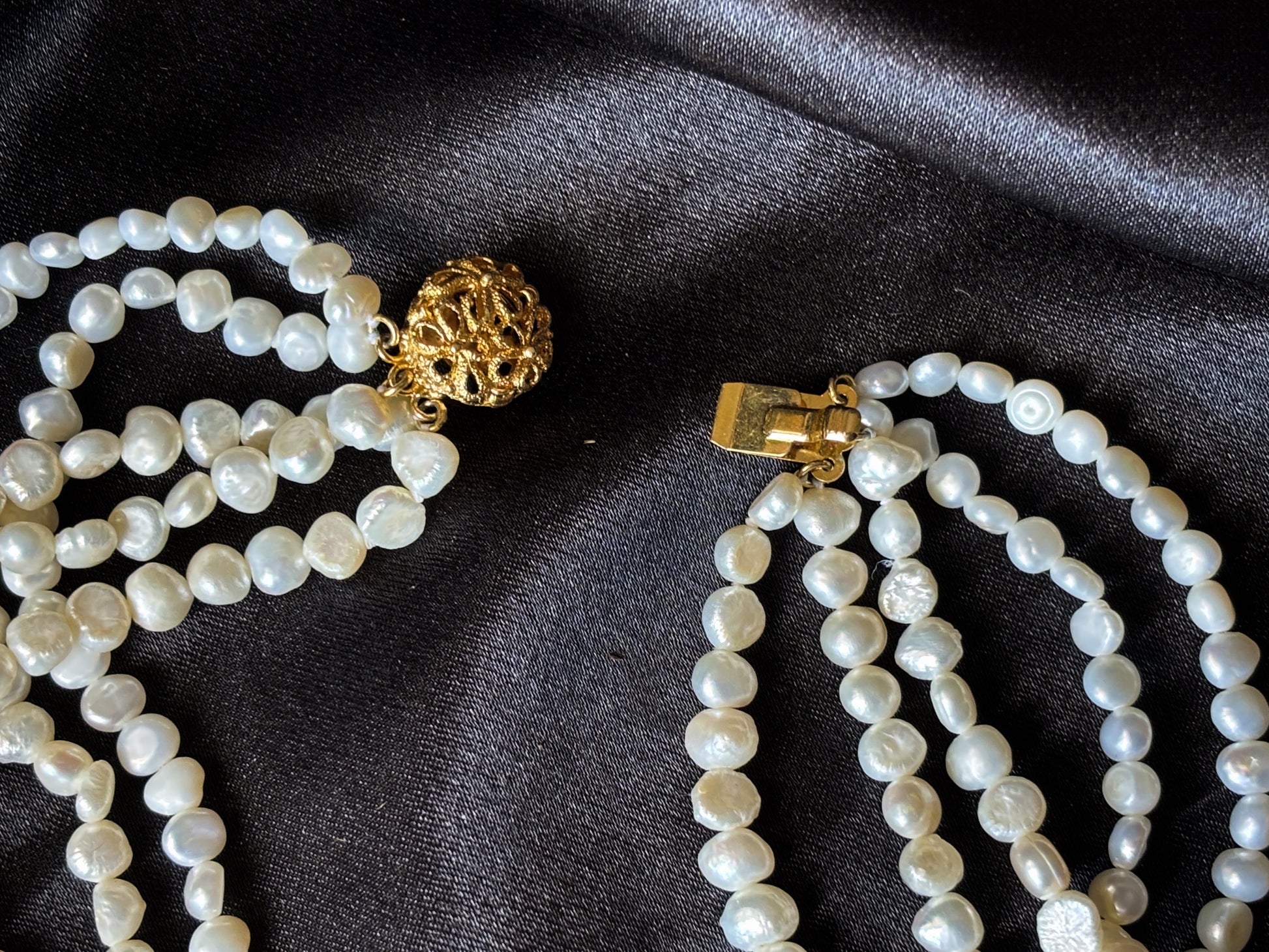 - Within this box I've included a genuine 5 strand necklace, with delicate pearls adorned by a golden clasp that clips.